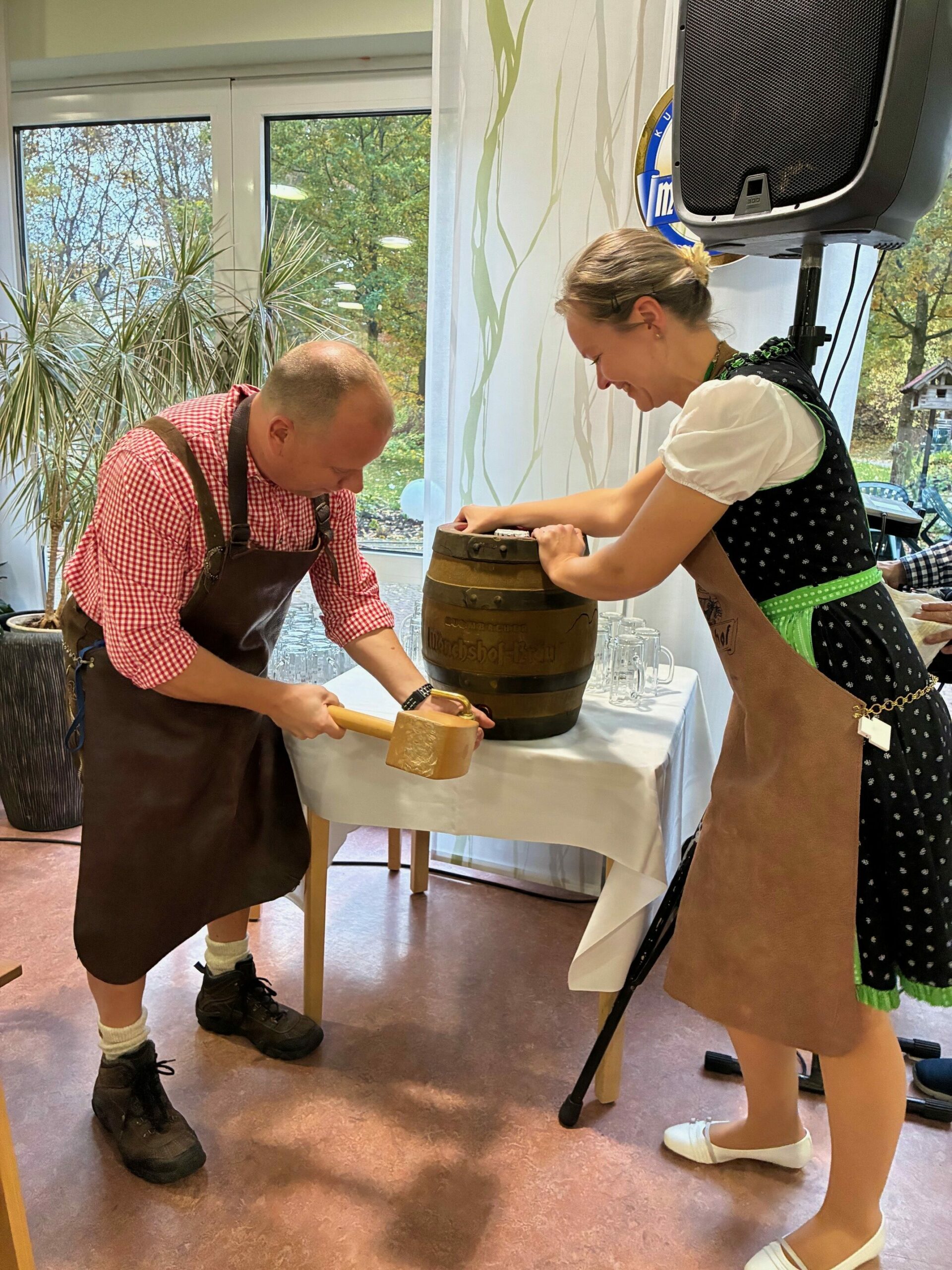 Musik, Spaß und Tanz machten unser Oktoberfest zu einem krönenden Herbstabschluss. Den Fassanstich machte dieses Jahr unser Hausmeister, der es mindestens genauso galant wie der Bürgermeister gemeistert hat. Daniel Gläser unterstützte uns musikalisch. Traditionell gab es dann zum Abendessen zu dem Fassbier eine leckere Haxe mit bayrisch Kraut und frischem Brot.